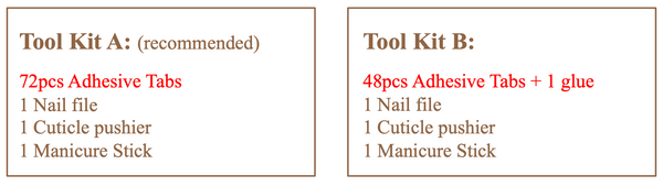 As all nails are custom handmade, please allow 2-3 business days processing time before shipping. Shipping takes 5-7 business days (for Tool Kit A) and 6-10 business days (for Tool Kit B).